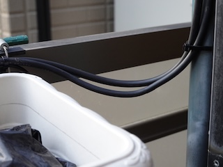 ならば、屋根以外の住宅構造物に固定すれば良いのではないかと考え、ベランダ手摺りから頑丈な支柱を立てて、支柱で太陽電池を支える構造を取ることにしました。